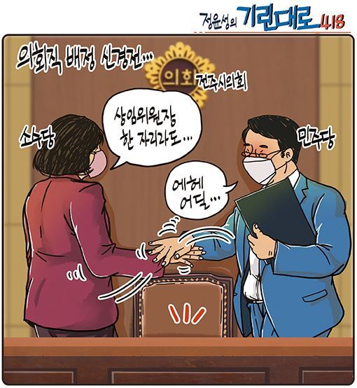 □ 전북일보 [정윤성의 기린대로418] 전주시의회 밥그릇 싸움...의회직 배정 신경전...